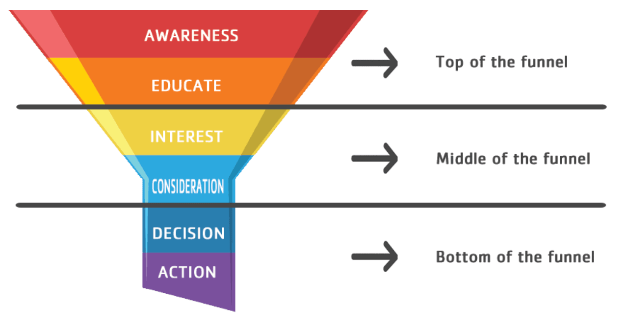 A general sales funnel consists of the following tiers: