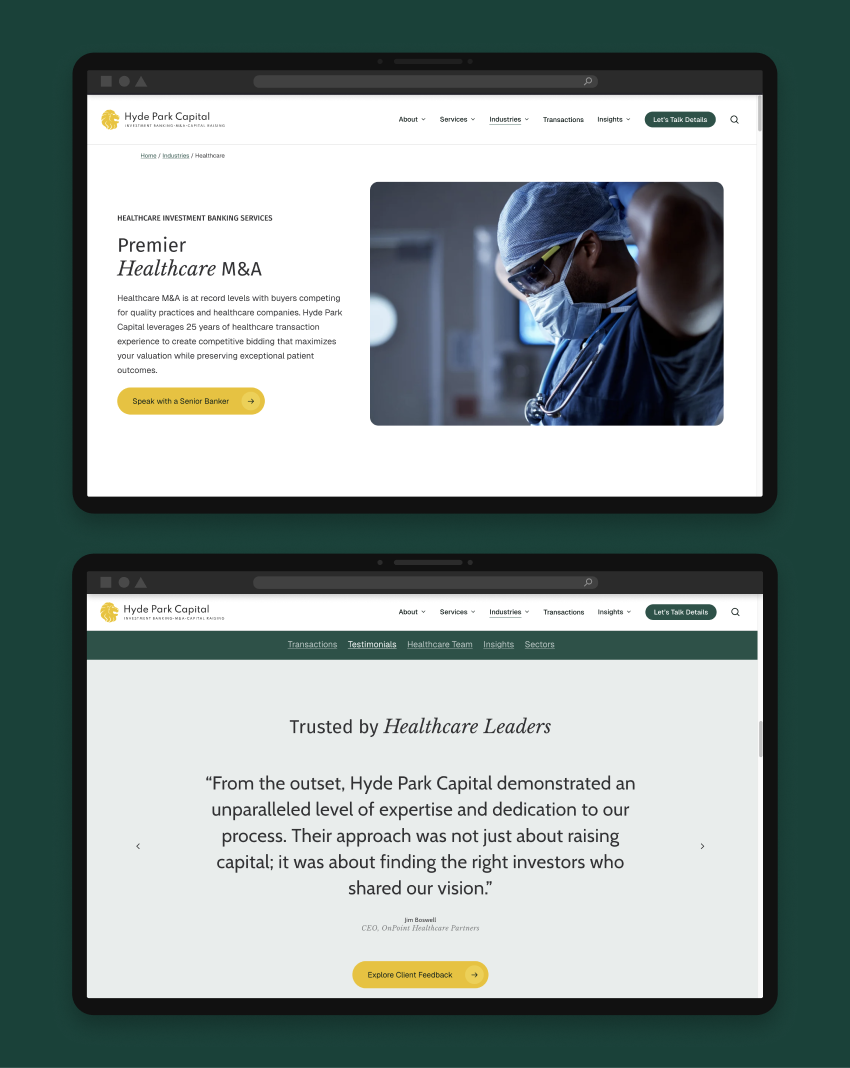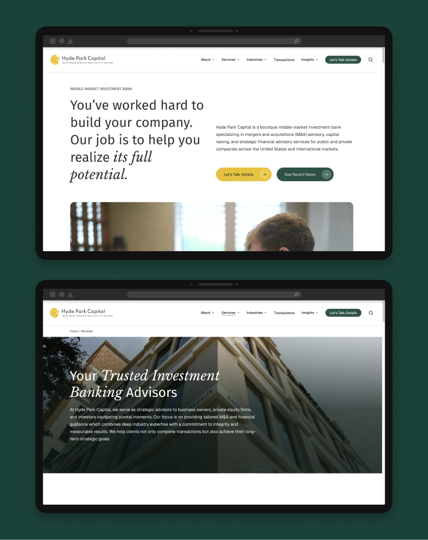 For Hyde Park Capital, the website was an opportunity to build a scalable marketing foundation and improve how they communicate integrity, expertise, and results.